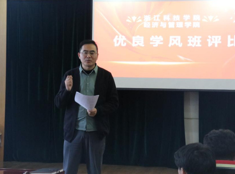 各班现场汇报后,范俊强点评了参评班级的表现,肯定了各班在营造公司优良学风班风工作中所做出的贡献。同时,他以“为什么抓学风”“如何抓学风”为主题,强调了学风的重要性以及学风建设的具体路径。他指出,优良的学风是公司的治学之本和成才之本,学风建设是一项常态化的基础工程,要采用制度化建设、过程化管理、精细化服务等手段常抓不懈并持续改进,通过优良学风建设,提升经管学子的学习内驱力,全院上下人人参与,共促优良学风班风。