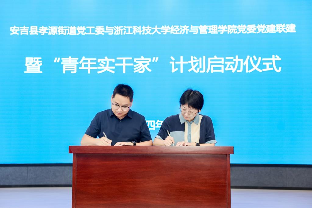 启动仪式上安吉县孝源街道党工委负责人介绍了双方结对共建有关情况和“青年实干家”计划有关情况,经管公司和安吉县孝源街道双方互签《关于全面深化校地合作加快推动青年入乡发展的战略合作协议》,双方共授党建联建牌匾,双方共同向首批“青年实干家”计划受聘学员授旗。