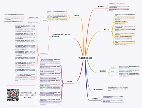 理论学习 首页 党建工作 理论学习 正文 【主题教育】应知应会!十九届四中全会超全学习资料包 【编者按】日前,中国共产党第十九届中央委员会第四次全体会议胜利举行。全会听取和讨论了习近平总书记受中央政治局委托作的工作报告,审议通过了《中共中央关于坚持和完善中国特色社会主义制度、推进国家治理体系和治理能力现代化若干重大问题的决定》。 为深入学习贯彻党的十九届四中全会精神,人民网·中国共产党新闻网整理了超全资料包,速速收藏! ★会议内容 ●中国共产党第十九届中央委员会第四次全体会议公报(全文) ●中共中央关于坚持和完善中国特色社会主义制度 推进国家治理体系和治理能力现代化若干重大问题的决定(全文) ●习近平关于《中共中央关于坚持和完善中国特色社会主义制度 推进国家治理体系和治理能力现代化若干重大问题的决定》的说明 拓展阅读—— ●中国共产党第十九届中央委员会第四次全体会议侧记 ●筑牢中国长治久安的制度根基——十九届四中全会《决定》诞生记 ●聚焦十九届四中全会公报高频词:“制度”出现77次 ●一文速览!十九届四中全会公报要点摘编 ●划重点!十九届四中全会公报速读 ●收好这张思维导图,一起学习四中全会公报 (点击图片查看原图) ●可听可读可收藏!十九届四中全会学习资料电子书 (点击图片查看原图) ★评论 人民日报系列评论—— ●人民日报社论:为实现中华民族伟大复兴提供有力保证 ●当代中国发展进步的根本保障——论深入学习贯彻党的十九届四中全会精神 ●推动各方面制度更加成熟更加定型——论深入学习贯彻党的十九届四中全会精神 ●准确把握国家治理的关键和根本 ——论深入学习贯彻党的十九届四中全会精神 ●在守正创新中坚定制度自信——论深入学习贯彻党的十九届四中全会精神 ●把制度优势更好转化为治理效能——论深入学习贯彻党的十九届四中全会精神 新华社系列评论—— ●筑牢实现伟大复兴的制度保障——一论学习贯彻党的十九届四中全会精神 ●把制度优势更好转化为国家治理效能——二论学习贯彻党的十九届四中全会精神 ●以人民为中心加强和完善国家治理——三论学习贯彻党的十九届四中全会精神 ●提高依法治国依法执政能力——四论学习贯彻党的十九届四中全会精神 ●把党的领导落实到国家治理各领域各方面各环节——五论学习贯彻党的十九届四中全会精神 ●强化制度意识,增强制度执行力——六论学习贯彻党的十九届四中全会精神 ★解读 ●如何理解“中国之治”?四中全会公报这些要点应知应读 ●不忘初心、牢记使命的制度……四中全会这些提法值得关注 ●遵循共建共治共享原则 建设社会治理共同体 ●从三方面认识推进国家治理体系和治理能力现代化 ●坚持和完善繁荣发展社会主义先进文化的制度 (资料来源:综合人民日报、新华社、人民网·中国共产党新闻网)