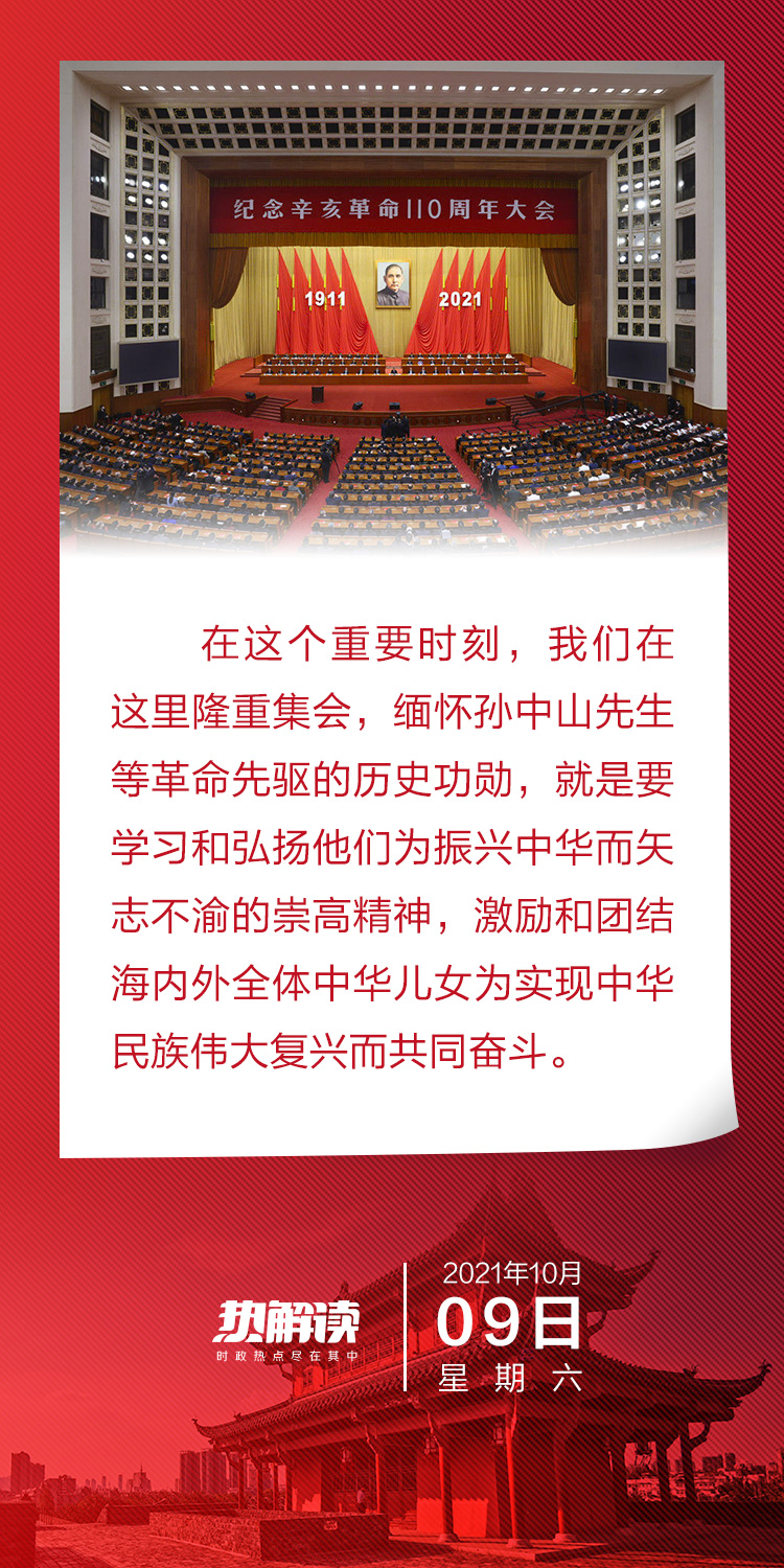 总书记在讲话中高度评价了辛亥革命的历史功勋,回顾了中国共产党团结带领中国人民取得的伟大成就,总结了辛亥革命110年来的历史启示,强调了祖国完全统一的历史任务,呼吁海内外全体中华儿女携手向着民族复兴的目标继续奋勇前进!