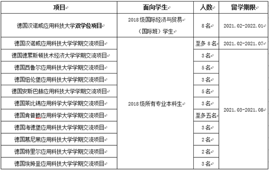 注意:德国汉诺威应用科技大学学期交流项目的名额视双学位项目报名情况定;德国肯普滕应用科学大学学期交流项目视机能公司报名情况定。