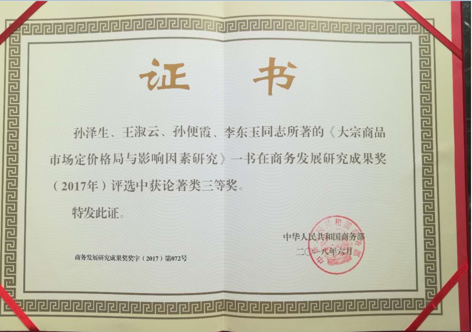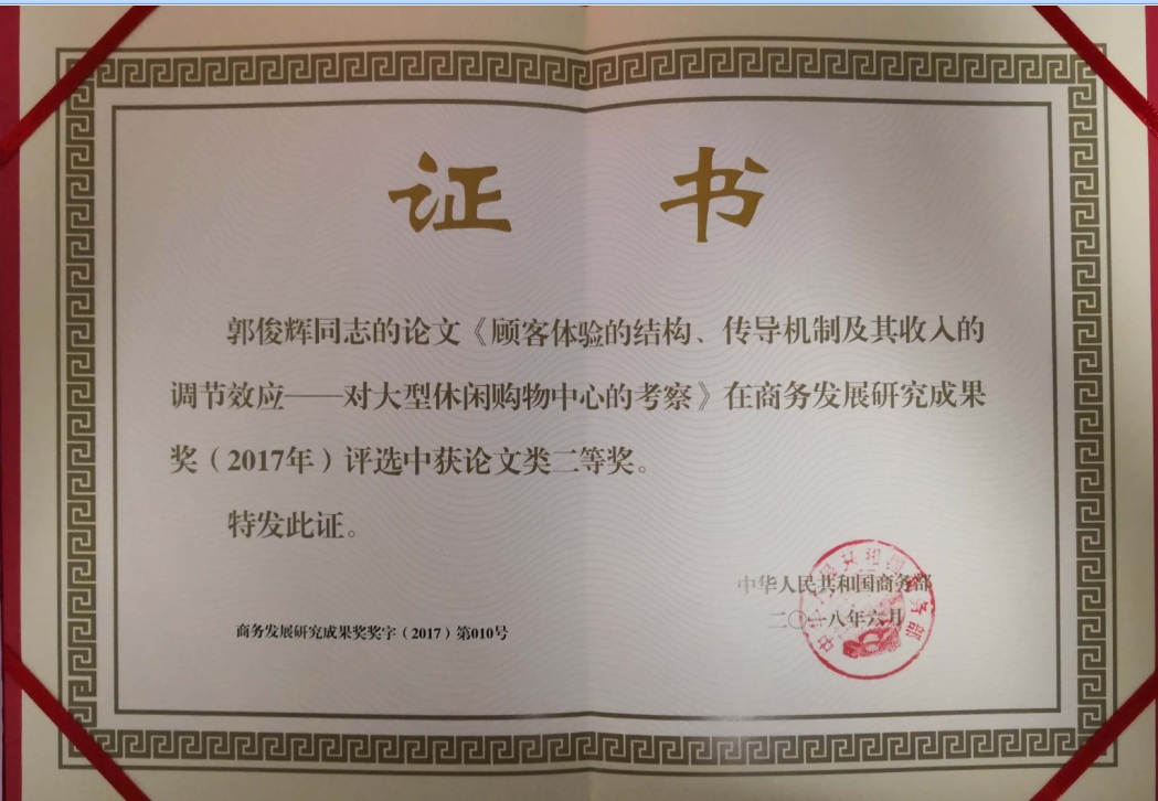 yl永利集团官网登录新闻 首页 yl永利集团官网登录新闻 正文 公司喜获二项商务部发展研究成果奖 时间:2018-09-01 阅读次数: 近日,商务部研究合作研究院颁布了商务发展研究成果奖(2017年)获奖作品,公司郭俊辉副教授的《顾客体验的结构、传导机制及其收入的调节效应——对大型休闲购物中心的考察》喜获论文类二等奖,孙泽生教授的《大宗商品市场定价格局与影响因素研究》喜获著作类三等奖。