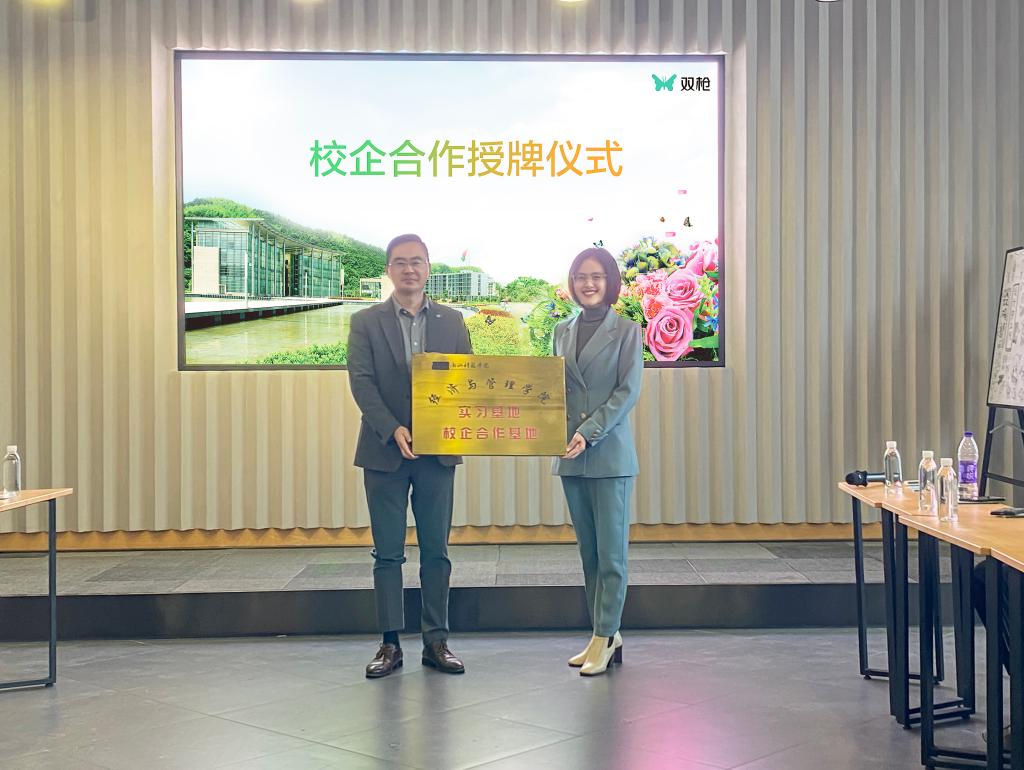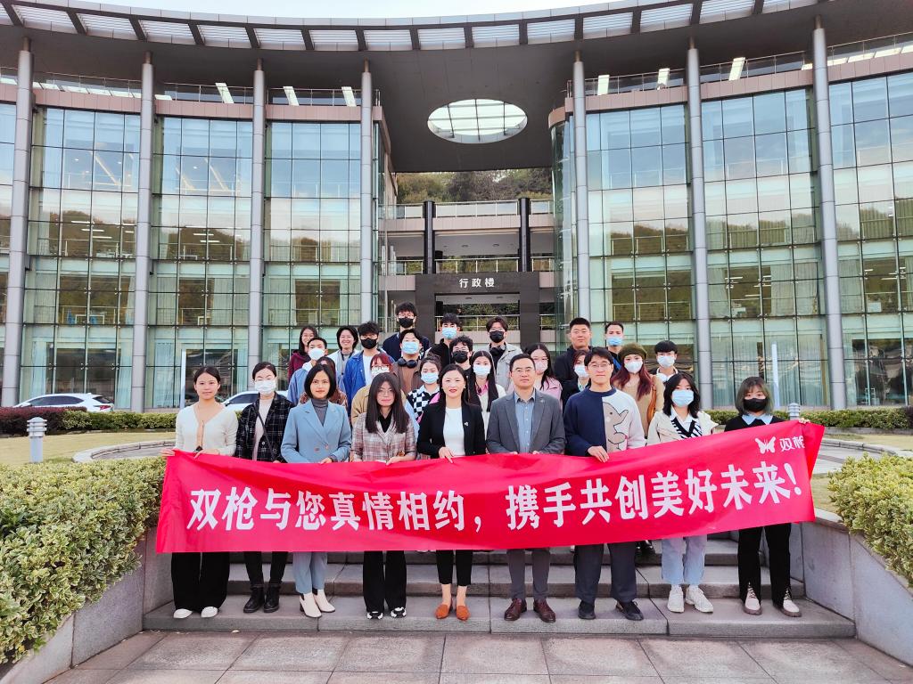 走访期间,经管公司和艺术公司30名本科生和研究生在企业人员的带领下,还实地参观了企业生产车间、产品展示区、生活服务区等厂区环境,参访员工与企业人员就实习和就业环节进行了面对面交流,公司老师就如何实现教育链与产业链、人才链和创新链的有机融合与企业方进行了互动交流。双枪科技股份有限公司是一家上市企业,其商超、电商、外贸、定制多渠道齐头并进,双方合作充分利用好高校理论人才优势和企业市场实践优势,有助于联动培养优秀人才,发挥校企双方优势,促进员工更高质量更充分就业。
