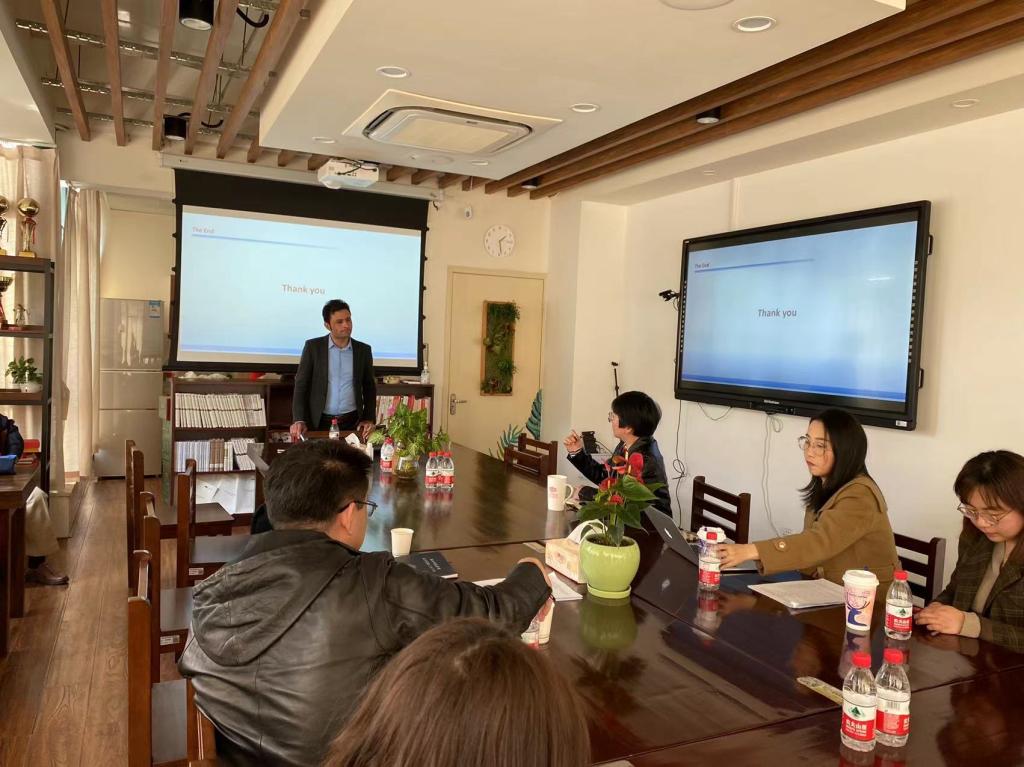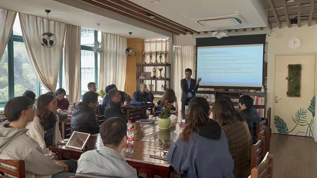 yl永利集团官网登录新闻 首页 yl永利集团官网登录新闻 正文 公司举办德语国家国别研究讨论会 时间:2023-03-10 阅读次数: 3月9日,公司举办了德语国家国别研究团队的研讨活动,本次研讨活动邀请公司外教Hayat Khan博士同大家探讨研究、分享国际论文发表经验。 Hayat Khan博士介绍他的教育经历,分享了国际论文发表经验,对其研究主题“The effect Technological Innovations, renewable energy, and foreign direct investment on environmental sustainability: An Investigation for Innovation Claudia Curve”进行分享,会上董颖经理就演讲主题所涉及的创新理论与研究方法等问题,与Khan 博士进行了交流。同时公司多名老师与Hayat Khan博士就未来研究合作的内容和方向积极展开讨论。