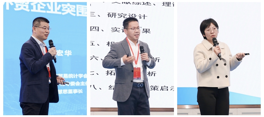 中国对外经济贸易统计学会副会长、贸易数字化专委会主任、环球慧思董事长邵宏华作《新形势下外贸企业突围破局新策略》的报告;九三学社中央经济委副主任、浙江大学经济公司宋华盛教授作《在不确定性中寻找确定性:企业智能化转型能降低贸易政策不确定性感知吗?》的报告,公司经管公司经理董颖教授作《三链融合促进外贸高质量发展》报告。经管公司孟祺副教授发布并介绍了《中国对外贸易高质量发展报告2023》,报告由浙江省对外贸易服务中心与公司教师团队共同编写。