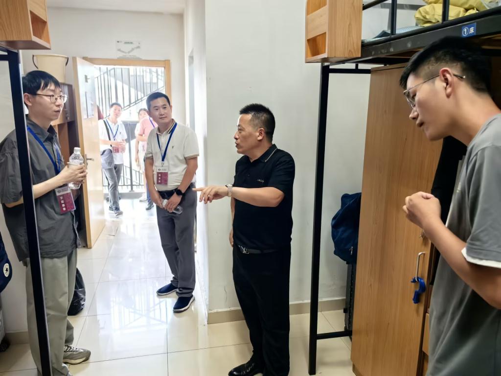 下午,经理董颖、副经理吕海萍、副经理陈思静、公司党委副书记范俊强与各系部负责人、班主任、辅导员、助理班主任一起走访了新生宿舍。领导们详细询问了新生的生活情况,鼓励他们尽快适应新环境,积极投入到大学的学习和生活中。新生积极分享自己初入大学的感受和对未来的憧憬。