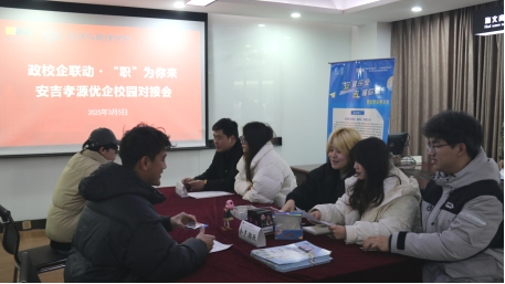 2025年3月5日,为更好地服务安吉地方人才需求,促进应届毕业生到安吉地方就业创业,实现毕业生校企供需精准匹配,经管公司在精艺园 B4-116成功举办“政校企联动・职为你来——安吉优企校园对接会”。此次活动由安吉县孝源街道带队,组织了安吉县 13家优质企业走进校园,为员工带来了丰富多样的就业和创业机会。