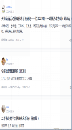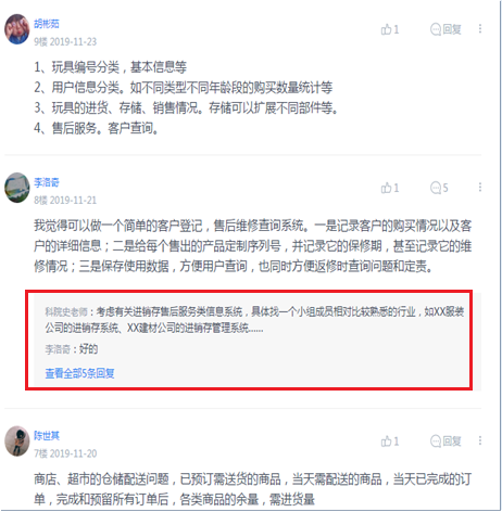 2)通过老师不断引导、互动、交流,每个课程组确定一个管理信息系统项目选题(对员工来说,找项目选题的过程比较困难),各课程组项目选题不能相同,鼓励选一些社会应用性强并与专业相关的项目。