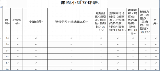 5)成绩评价:老师评价(项目综合作业,交流互动,答辩)+课程组互评(交流互动,答辩)